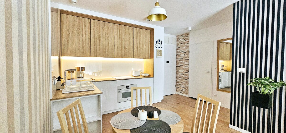 Luxurious, fully equipped 2-room apartment in the Aqua Polanki complex, ~350 m from the beach. Price includes free access to Wellness (heated 25 m pool, leisure pool, kids’ pool with slide, jacuzzi, saunas), fitness, kids’ playroom, outdoor areas, viewing terrace, and parking. 200 m to a 60 km seaside cycling network. Dog beach nearby.