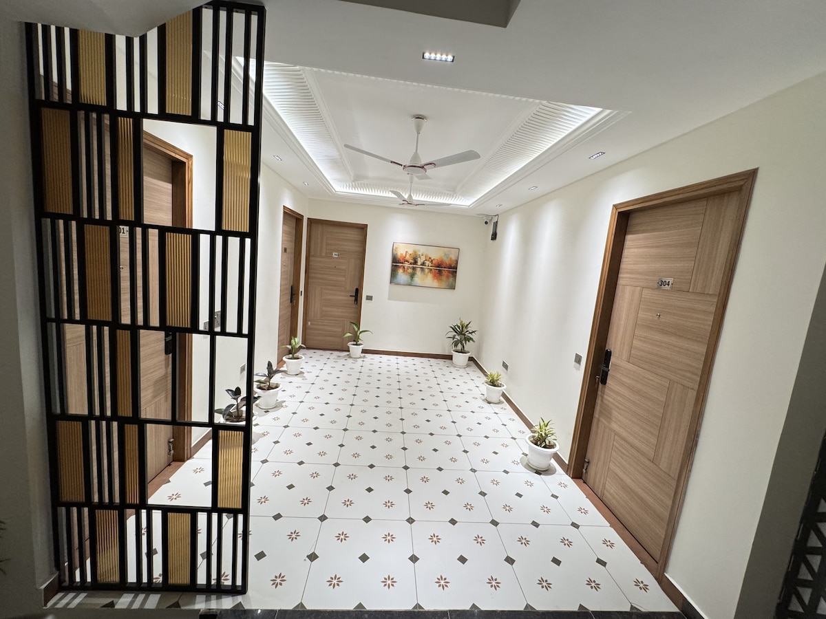 私たちの2ベッドルームのアパートは、本物の街の雰囲気があります。4人でも快適に過ごせます。 美しい庭園、設備の整ったキッチン、快適な書斎など、アパート全体を独り占めできます。 アパートからは、歴史的なクトゥブ・ミナール複合施設、さまざまな公園、レストランや映画館のあるショッピングモールへのアクセスも簡単です。マックスとマックススマートスーパースペシャリティ病院からも徒歩圏内です。 徒歩2分の場所にメトロ(イエロー・ライン)があり、移動に便利です。