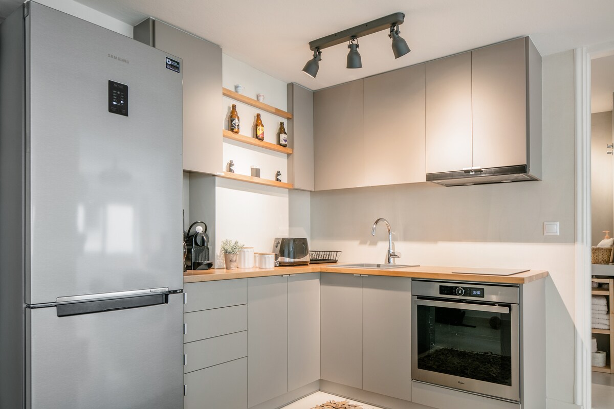 柔らかなグレートーンと木製の備品が、明るいポップな色で引き立てられたインダストリアルシックなデザインの家に足を踏み入れてみませんか。 キッチンで地元の食材を使って料理をし、観光の1日の終わりには快適なソファに沈んでくつろぎましょう。許可証/届出・登録番号:3089588 ご到着時には、法律(法律5073/2023、FEK: B7535/31.12.2023)に基づき、4月から10月までの間、1泊あたり8ユーロの気候変動対策手数料の支払いが必要です。 領収書をお渡しします。