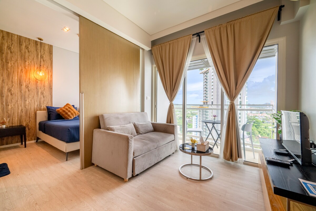 ソーシャルメディアにぴったりの絶景ビーチビュー。 - ベッドルーム1室、24階、シティビューとビーチビュー。 キングサイズベッド1台(6フィート) -ソファベッド×1 - フードと電子コンロを備えた内蔵キッチン 冷蔵庫、電子レンジ、ケトル、トースター。 屋上レストランからの街並みの眺め プライベートビーチの近く スライダー付きのユニークなスイミングプール2つ。 フル装備のフィットネス。 コンビニまで20メートル ストリートフードまで20メートル。 -ジョムティエンビーチ沿いの有名なレストランまで5分 ジョムティーンビーチまで5分。