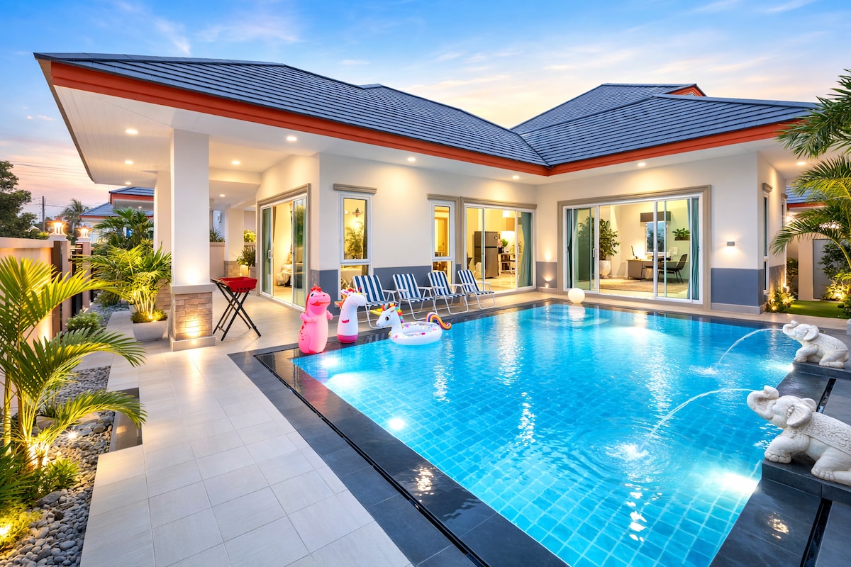 秘密のビーチから徒歩5分のこちらの静かなプールヴィラで、ご家族一緒におくつろぎください。地元のガイドと一緒に釣り船に乗ってサッタヒップの島々を探索しましょう。専用のプール、屋外の炭火バーベキューグリル、65インチのサムスンのスマートテレビ、ヨーロッパスタイルのオープンキッチン、コンバーチブルプール/テーブルフットボール、その他のゲームを備えたプライベートなヴィラ全体をお楽しみください。ナジョムティエンの平穏で静かな住宅コミュニティ内にあり、幹線道路とビーチフロントの間に便利に位置しています。