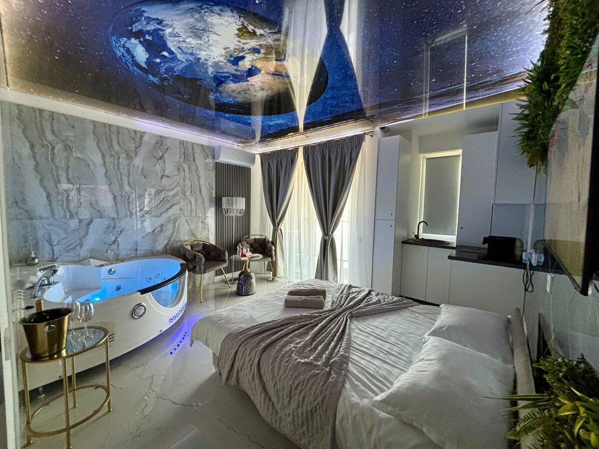 この場所は市内中心部に位置しており、特別なインテリアのジャグジーバスで忘れられない夜を過ごすことができます。