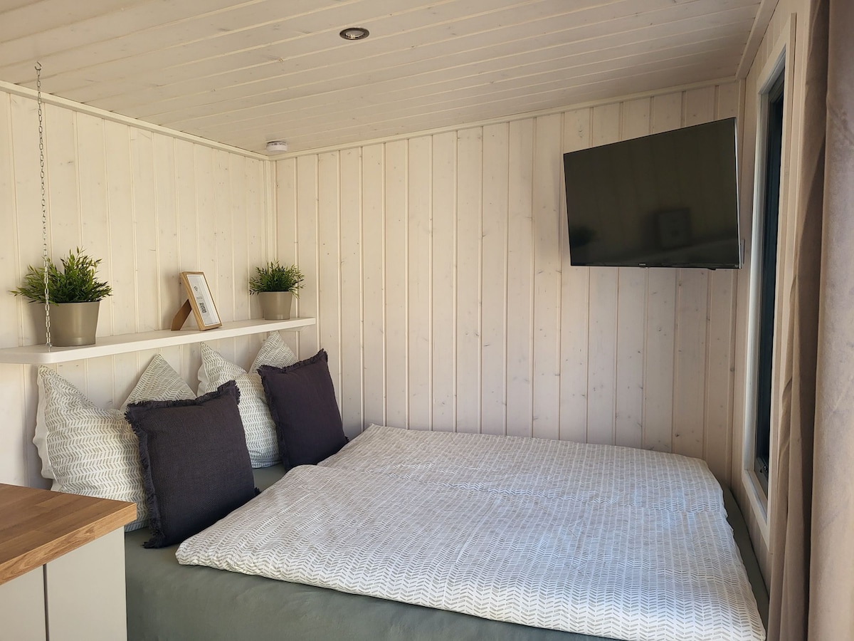 レーニンのクロステル湖にある、プライベートウェルネスエリア(ジャグジー&サウナ)を備えたモダンなタイニーハウスでの滞在をお楽しみください。ベルリン中心部まで約45分、ポツダムまで約20分の場所にあり、短期休暇に最適な場所です。ここでは、心をリラックスさせ、日常生活のストレスから解放されます。