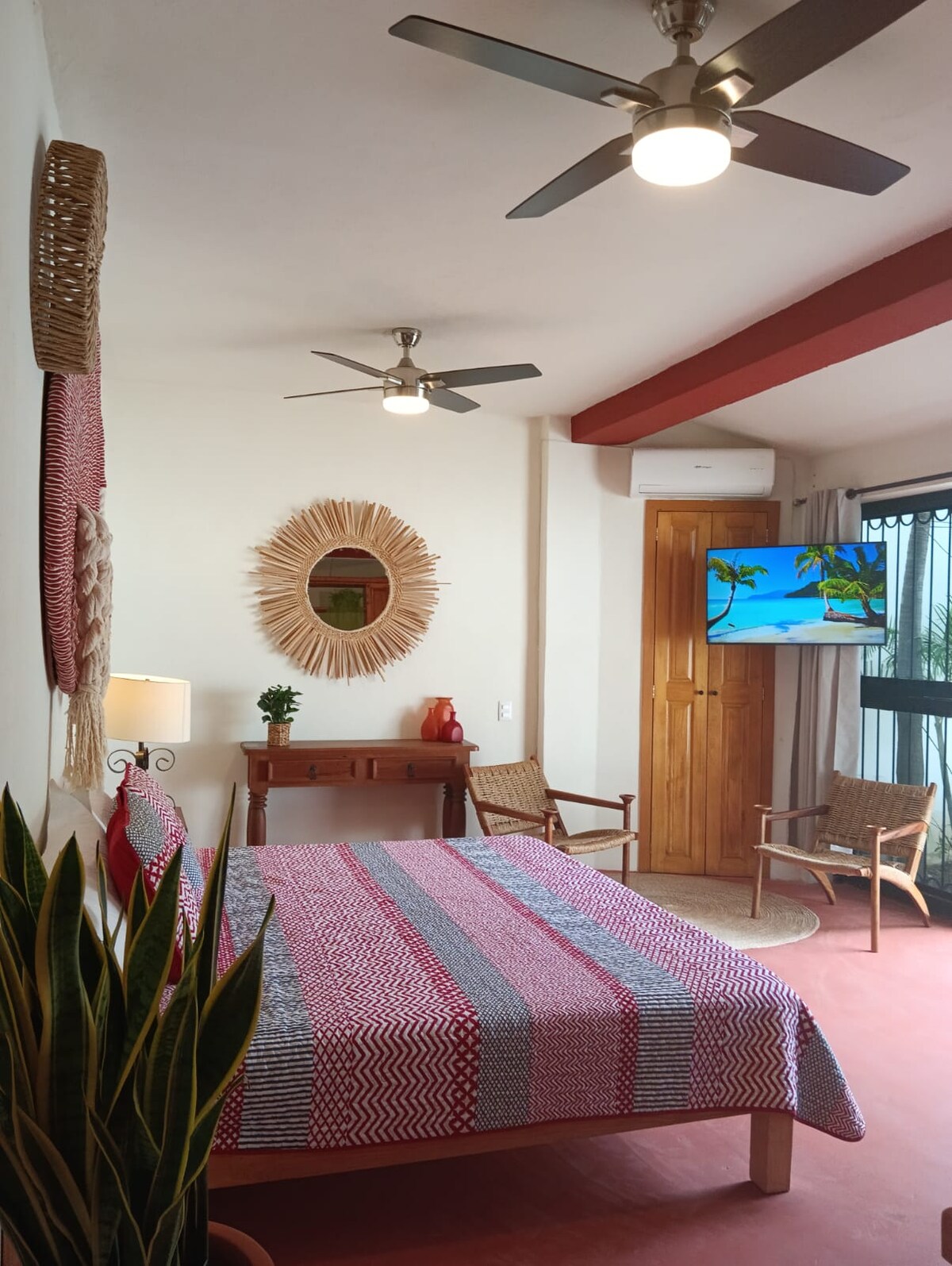 プンタ・デ・ミタに位置するホテル・ラ・キンタ・デル・ソルは、ビーチの真向かいにあり、7つのワンルームスタイルの客室すべてからオーシャンビューが楽しめます。 パティオレベルの客室には、クイーンベッド2台(最大4名様)、キッチン、エアコン、Wi-Fi、大きな共用バルコニーからの素晴らしい景色があります。 屋上デッキ、ハンモック、パラソル、パラパ、バーベキューを備えたビーチクラブなどのアメニティがあります。 素晴らしいサーフブレイクに近く、レストランやショップまで徒歩3分です。 ホストは敷地内に住んでいます。ホテルのような利便性でプライベートアパートをお楽しみください!
