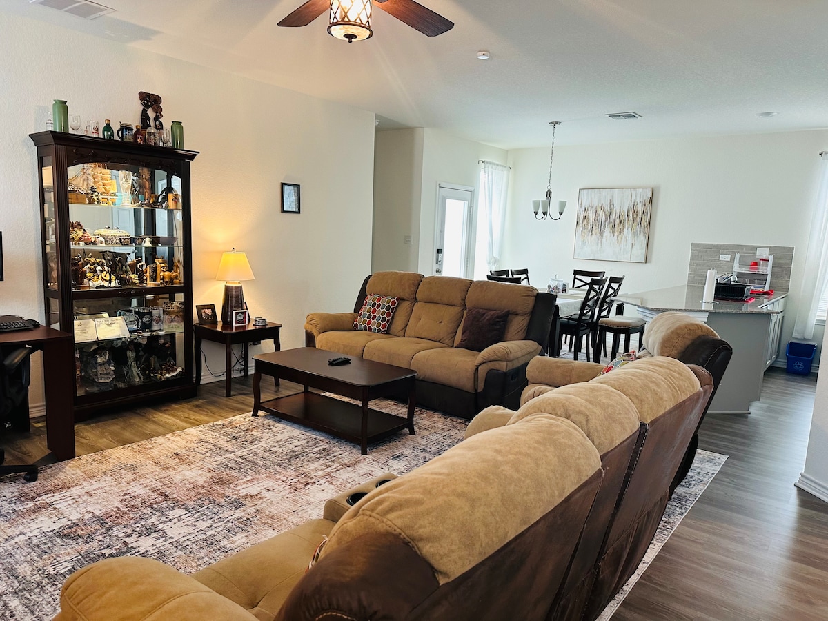 こんにちは!私たちは家にたくさんの愛を込めており、素晴らしい滞在になるように願っています。 - I35、FM1604、RAFBの近くにあり、便利で、IKEAやたくさんのレストランから5分です。 - ガレージには2台分の広々としたスペースがあり、私道には追加の駐車場があります。 - とても安全で、家族連れに優しく、静かなエリアで、ライブオーク警察署がエリアをパトロールしています。 近くにはライブオーク警察署と消防署があります。 定員9名 調節可能なアームと十分な座席を備えたスマートテレビ 洗濯機と乾燥機