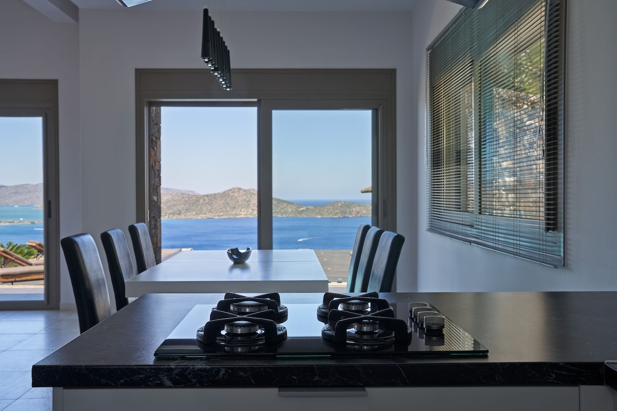 海で平和な休暇をお楽しみください! ベッドから眺めることができる、朝のユニークな日の出で目を覚ましましょう。 屋外ジャグジー、共有プール、ベランダでリラックスしながら、波の音と鳥のさえずりをお楽しみください。 どこからでも素晴らしい景色が楽しめます。目の前にはクレタ海の広大な青さ、周りには印象的なクレタ島の自然。 2つのリビングルームから寝室、ダイニングルーム、キッチン、バスルーム、屋外シャワーまで、どこからでも素晴らしい景色が楽しめます。