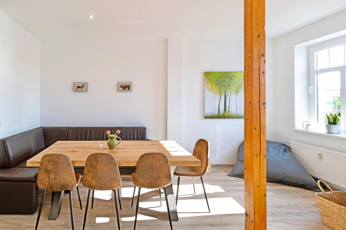 完全に改装されたアパートは1階にあり、ベッド2台の寝室、ソファのあるリビングルーム、キッチン、バスルームがあります。寝室とリビングには、価値のある古い家具を取り入れ、キッチンとバスルームの洗練されたモダンな快適さを犠牲にすることなく、居心地の良い雰囲気を作り出しています。 朝食用のパンは、すぐ向かいのパン屋で購入できます。 ケムニッツ - 2025年欧州文化首都 簡単にアクセスできます!