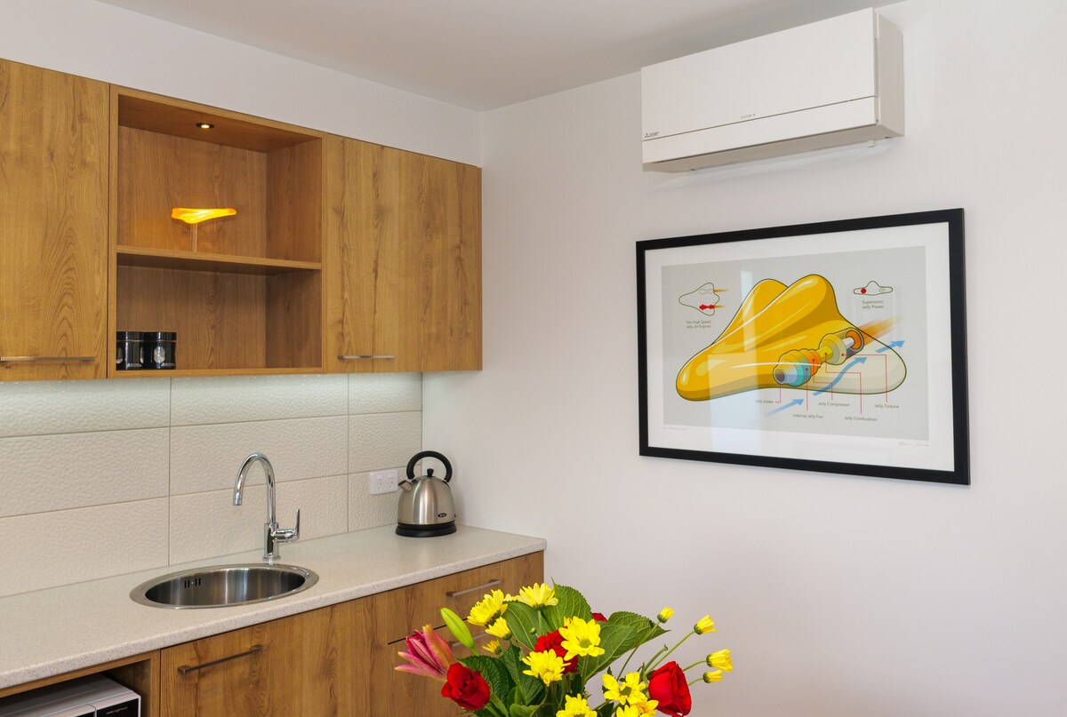 日当たりの良い新しい独立型ワンルームアパートでくつろぎましょう。 目覚めると、遠くに山脈が見えるウェリントン港のパノラマビューが広がります。 クック海峡を渡るフェリーと、港の入り口を航行する船を眺めてください。 夜には何百万もの街の明かりがきらめいています。 ヴィクトリア山の頂上にあり、素晴らしいウォーキングコースとマウンテンバイクコースがすぐそばにあり、市内、コートニー・プレイス、オリエンタルベイまで徒歩圏内です。道路の向かいにバス停があります。
