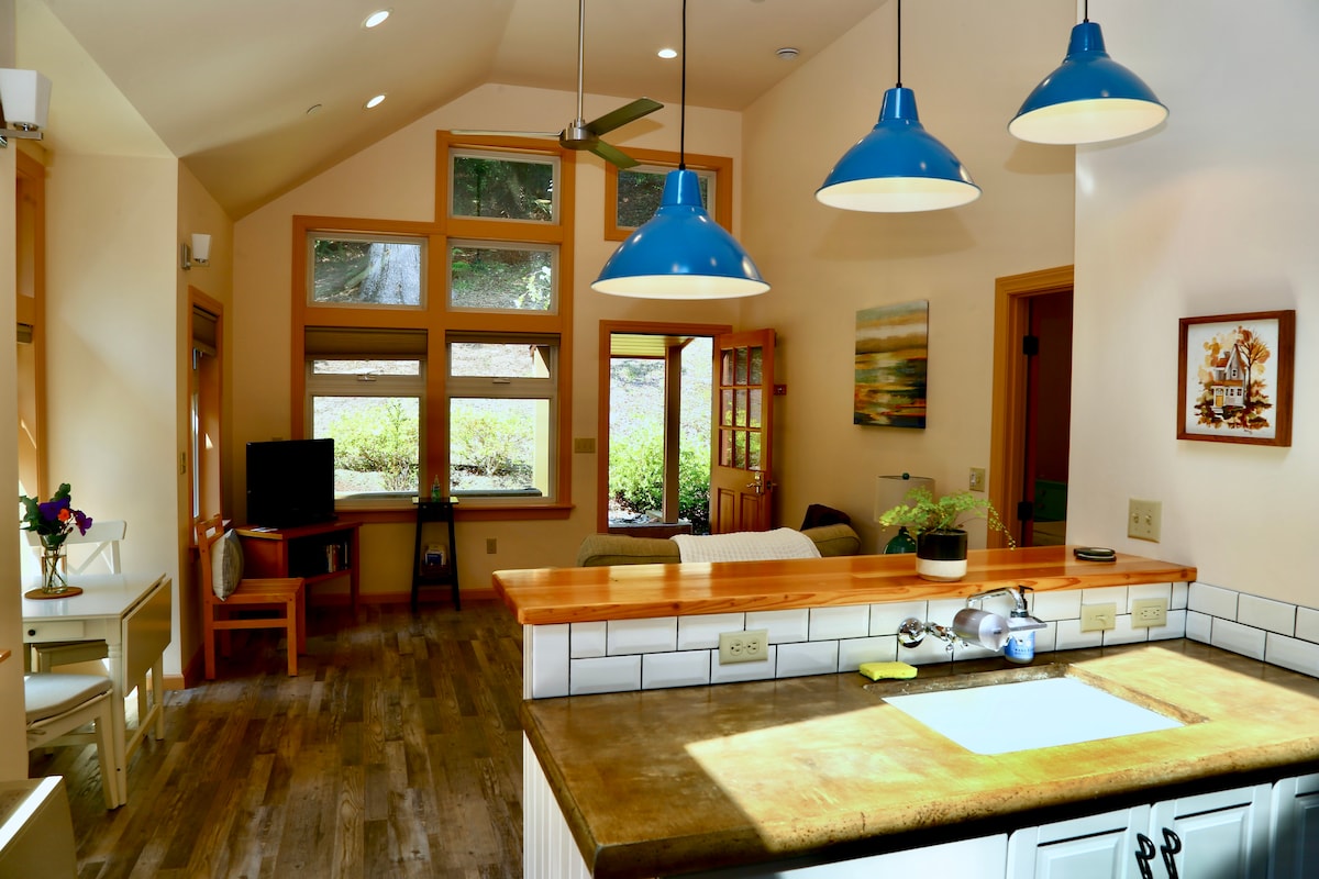 コテージは居心地が良く快適で、全体に手作りの雰囲気があります。 美しい田舎の環境にあり、ユーレカのダウンタウンとアーカタのダウンタウンまで車で10 ~15分で行けます。 コテージは4エーカーの敷地内にあり、小さなレッドウッドの木立に囲まれています。人里離れた場所を探しているゲストには十分なプライバシーが確保できます。 コテージのゲストは、敷地内や庭でくつろぐこともできます。 コテージは2名様に最適です
