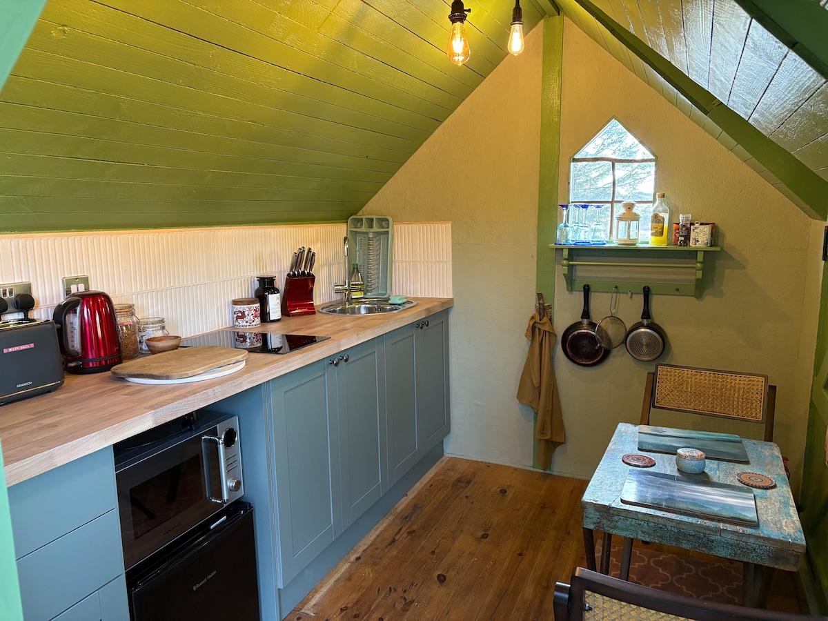 こちらはThe Cuckoo's Nestにある2つのグランピングハットのうちの1つです。伝統的なケルトのラウンドハウスに着想を得た、居心地の良い木造の小屋は、サウス・ユイスト島の美しいロッキーノートの農場の町にあります。エリスキー島、サウス・ユイスト、ベンベキュラ、ノース・ユイストを結ぶ幹線道路から約1マイルの便利な場所に位置するこの小屋は、島を探索したり、ヘブリディアン・ウェイを旅行したり、リラックスした短期休暇を取ったりするのに最適な拠点です。