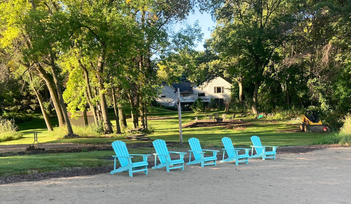 このカスタムビルドの家は2016年に完成し、家具が揃っています。 広い敷地、バー付きのフルウォークアウト地下室、5ベッド+ソファークッション付きオフィス、4.5バスルーム、スクリーンドポーチ、美しい景色。 マスターベッドとゲストマスターベッドには、親戚や友人用の専用バスルームがあります。 寝室はさらに4室あります。 湖にアクセスできるドック(湖岸から泳ぐには適していません)があり、地元のボートレンタルをご利用いただけます。ミネアポリスのダウンタウン/空港/スタジアム/モール・オブ・アメリカまで30分です。 素晴らしい小さな町と静かなエリア