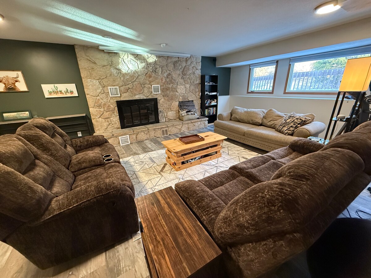 バックヒルスキーリゾートからわずか数分の、中心部に位置する2200平方フィートの家へようこそ! 4ベッドルーム/2.5バスルームの家に11人が宿泊できます! ビリヤード/テーブルフットボールを楽しんだり、ゲームルームで斧投げを楽しんだりして競い合いましょう。 フェンスで囲まれた広い裏庭はペットに最適で、屋内の暖炉の周りで体を温めることができます! ファミリールームが2部屋あり、収容人数とくつろぎのスペースに十分余裕があります。 数え切れないほどのレストラン、モール・オブ・アメリカ、たくさんのショッピングの近くにあり、間違いありません!お会いできるのを楽しみにしています!