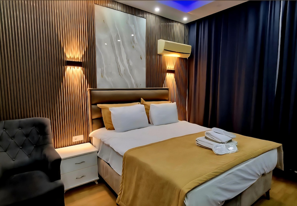BayMari Suites City Life Apart Hotelは、24時間365日のセキュリティとレセプションサービスを提供するリゾートで、家族や大人数のグループ向けの設備の整ったスイートアパートメントで構成されており、快適な宿泊施設を提供しています。 BayMari Suites City Life Facilities: * 45平方メートルの1ベッドルームアパートメント *キングサイズベッド1台とダブルサイズのソファベッド1台 * 24時間365日対応のセキュリティ *有料の空港送迎 *中心部のロケーション *地下鉄駅まで徒歩9分 *イスタンブール・フェア・センターまで8分 *高速Wi - Fi *設備の整ったキッチン