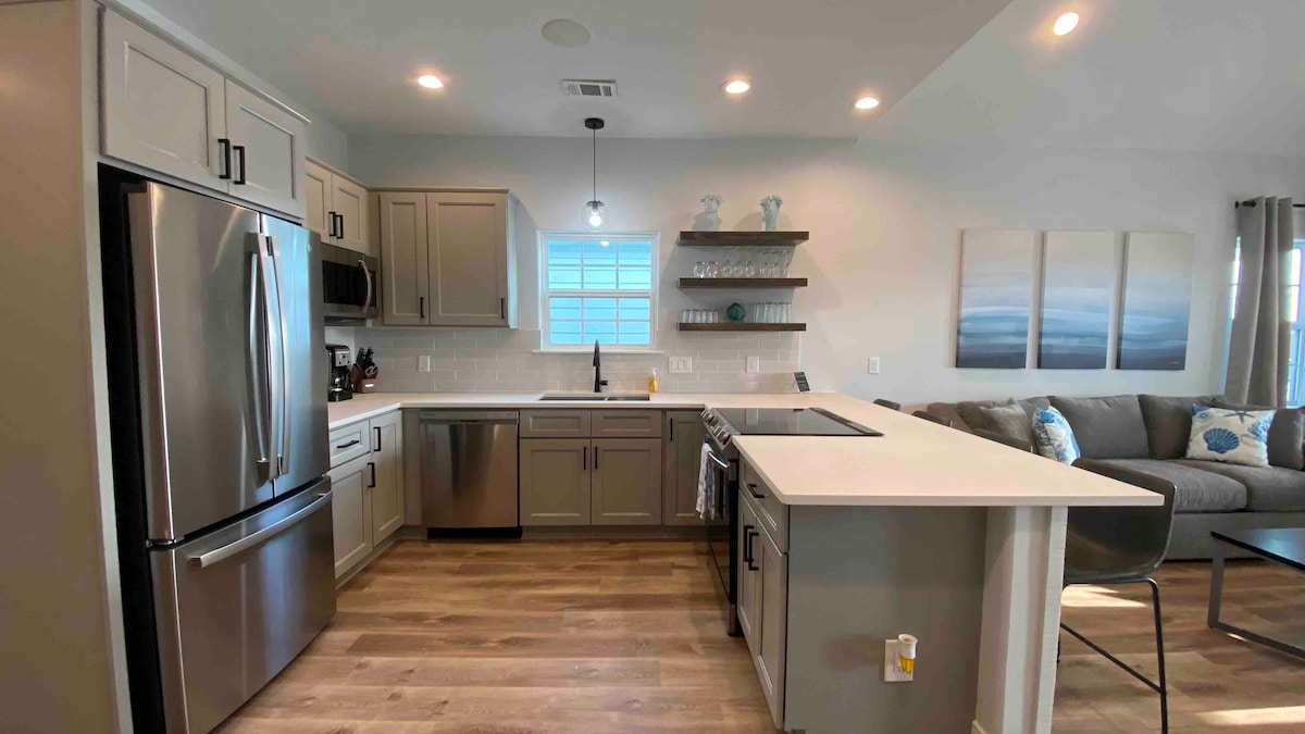 コースタルオアシス 豪華さと快適さが完璧に組み合わさっています! 隠れた名所、美しく装飾された広々とした新しい家。 ご滞在をお楽しみいただきながら、通りを少し歩いて釣りに行ったり、ポーチでくつろいだり、水辺の景色に浸り、壮大な夕日をお楽しみください。 家には以下が含まれます: エンターテイメントやリラックスのためのオープンコンセプトのフロアプラン、グルメなモダンキッチン、各リトリートの専用パティオ。 ケマー・ボードウォークまで10分、ガルベストンまで25分、近くには高評価のレストランがたくさんあります