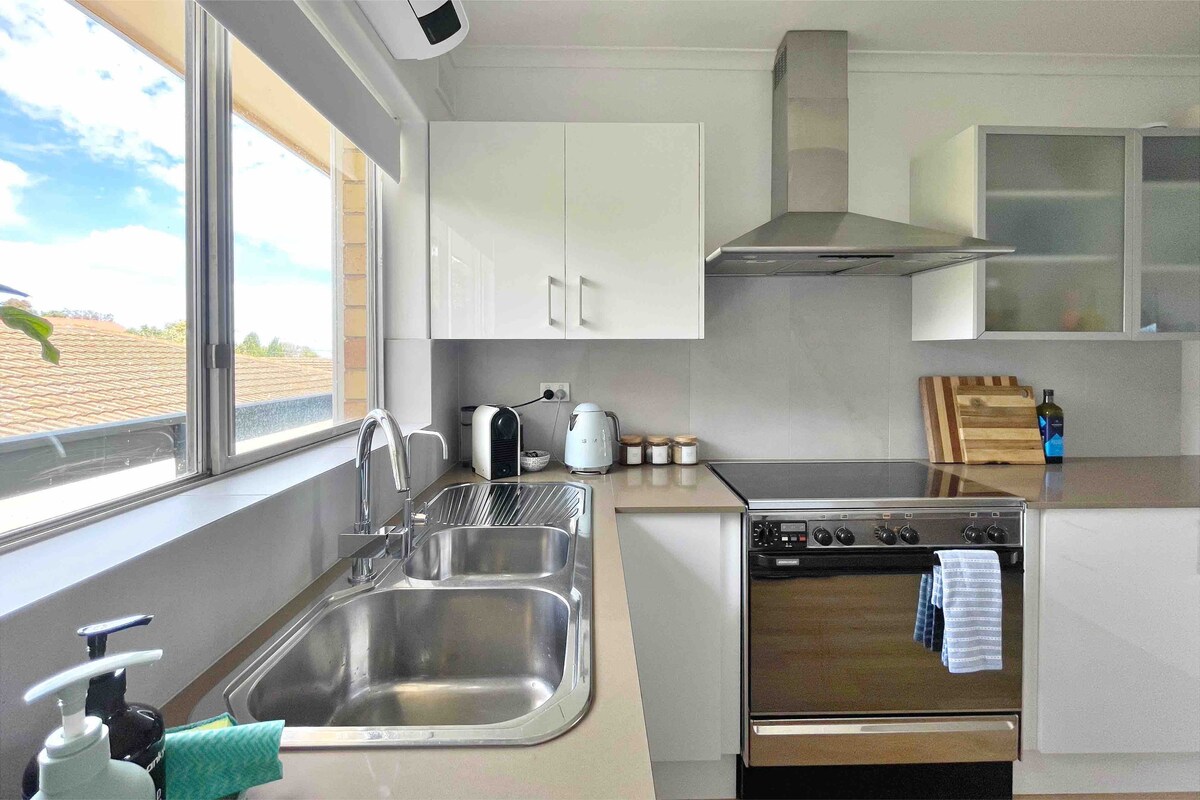 専用駐車スペースと専用玄関付きの2ベッドルームユニット。 ロックボックス付きの24時間セルフチェック。 ビーチから350m、最寄りの駅やカフェまでわずか170mです。 快適でストレスのないご滞在をお過ごしいたけるよう、すべてのリネン・タオルと必需品をご用意しております。 ベッドにはメモリーフォームのマットレストッパーと大きな枕が備わっており、最高水準の清掃が行われています。 空港から車または電車で20分、アデレード市から車または電車で30分(電車は15分ごとに運行)