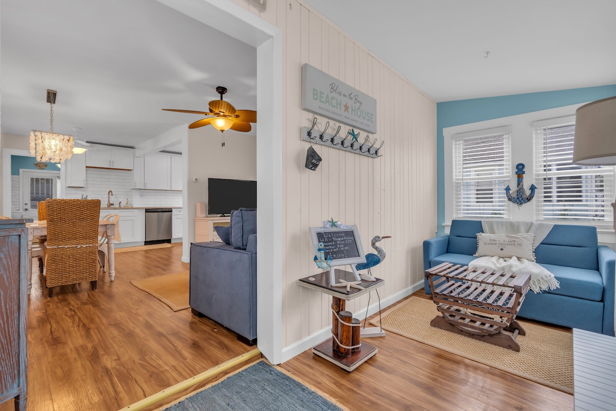 Back by popular demand - FREE NIGHT added with every reservation during the offseason! Every 2 nights gets you 1 for free! Pet friendly and FREE parking on site! A renovated, two bedroom beauty! Quick walk to beach and boardwalk! No detail spared for this cozy sanctuary -- hotel-quality bedding, a spacious shower, stocked kitchen, fast WiFi, and TVs in each room! NO Parties. You must be 25+ to rent (Seaside Heights rules). We don't like chores, either. Your cleaning fee covers EVERYTHING!