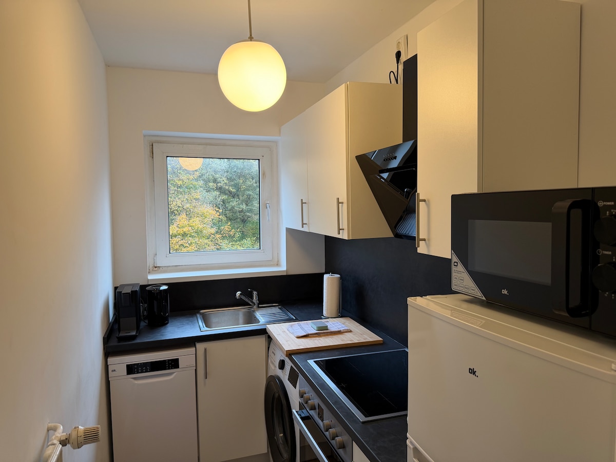 ようこそ! 長期滞在は割引が可能です。ご興味があれば、お気軽にご連絡ください。お迎えできるのを楽しみにしています! 私のスタイリッシュな宿泊施設には、寝室(ベッド1.40 m)、ソファベッド付きのリビングルーム、バルコニー、バスタブ付きのバスルーム、必要なものがすべて揃った小さなキッチン(ホットプレート、電子レンジ、オーブン、コーヒーメーカー)があります。 屋外での喫煙は許可されています(バルコニーなど)。 駐車場の注意事項にご注意ください。庭はプライベートで、アクセスできません。