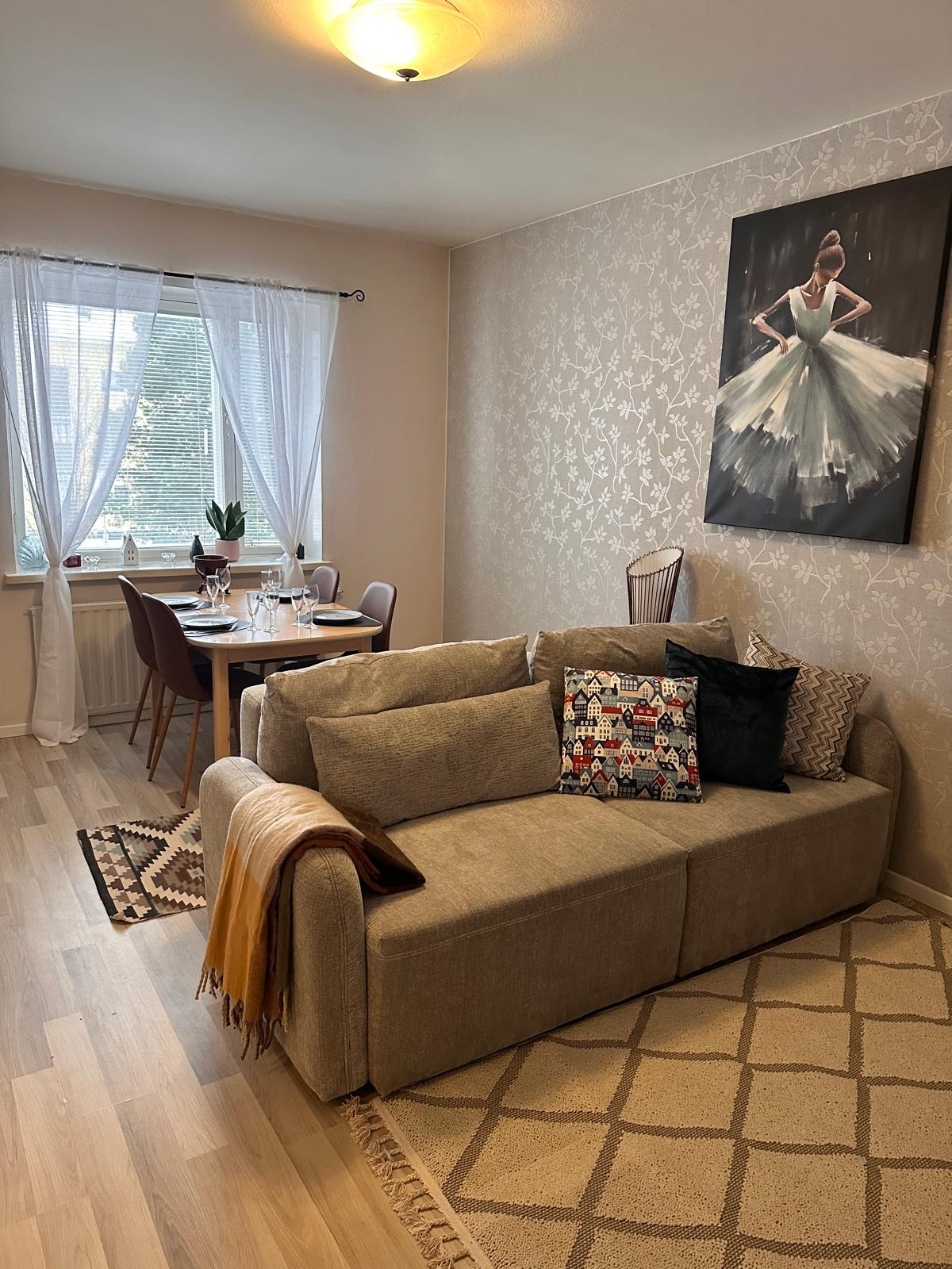セイニョキ市街地(1km)近くの非常に清潔で広々とした2ベッドルーム(60m2)。最大6名様までご宿泊いただけます。 コーヒーと紅茶をご用意しております。バスルームには無料の洗濯機があります。バルコニーにはガラスが張られています。 清掃料金は料金に含まれています。 バス停まで70メートル Kマーケット100m Sマーケット450m 中央病院1.7キロ イデアパーク3.5km
