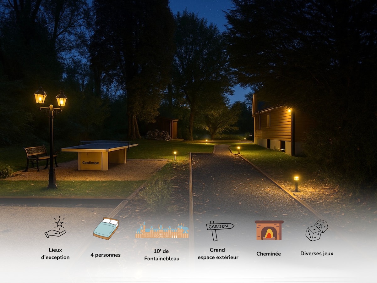 私が心を込めて作り上げたこの居心地の良いシャレーで、自然の中の魅力的でロマンチックな環境をお楽しみください:) 完全装備で、すべての季節で快適に過ごせるよう完璧に絶縁されています。テラスでのんびりと過ごしたり、夏冬を問わず4~6人乗りのジャグジーでリラックスしたり(オプション)、セーヌ川を眺めたり、大画面でお気に入りの映画やドラマを楽しんだり(オプション)してください。世界中のすべてのチャンネル、映画、テレビシリーズを観ることができるテレビ。