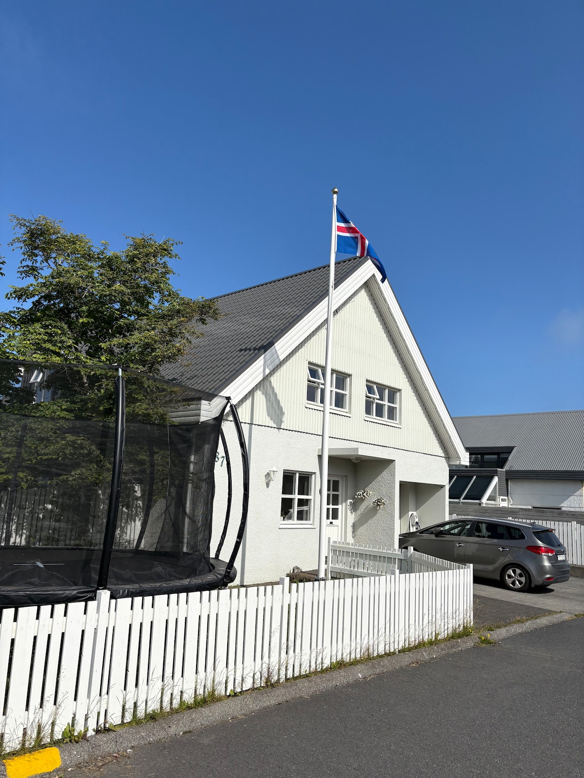 レイキャビクのダウンタウンから徒歩30分のこの落ち着いた中心部の近所には、家族で訪れたい場所がすべてそろいます。このエリアは安全で子供に優しく、地元のプール、海岸、近くの散歩道があります。 大型トランポリン、ミニサッカー場、100平方メートルのテラス、ホットタブを備えた新しく改装された庭園をお楽しみください。あらゆる年齢層の方に楽しんでいただけます。 広々とした2階建ての家には5つの寝室があり、最大10名のゲストが快適に宿泊できます。リラックスした思い出に残る滞在を求める家族連れやグループに最適です。