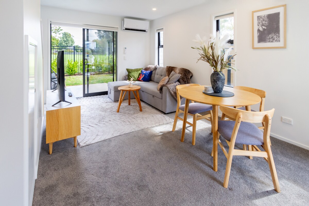 アディントンにあるこの静かでスタイリッシュなワンルームでくつろぎましょう。 この1ベッドルーム、1バスルーム、1階建ての隠れ家は、短期滞在でも1週間の滞在でも、クライストチャーチの休暇に最適です。 フルサイズのキッチン、洗濯機と乾燥機、高速インターネットをお楽しみいただけます。 専用の中庭で太陽の光を浴び、電気自動車充電ステーション付きの専用駐車スペースをご利用いただけます。 中心地から車ですぐの場所にあり、自宅のようにくつろげる完璧な宿泊先です。