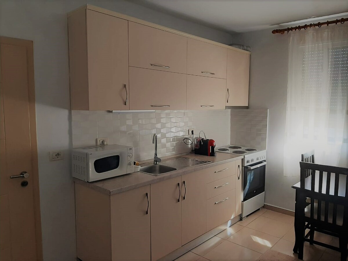 城の丘のふもとにあるベラトのアパートで、体験と思い出を作りましょう。 当宿泊施設は、2400年の歴史を持つベラト市内の観光を楽しみたい方に適した居心地の良い空間です。57平方メートルの広さに、寝室からリビングルーム、キッチン、バスルーム、庭まで必要なものがすべて揃っています。 アパートには、無料Wi-Fi、キッチン、エアコン、スマートテレビ、監視カメラ、無料駐車場など、必要な設備がすべて揃っています。 また、とても美しいインテリアデザインで、我が家のように感じていただけます。