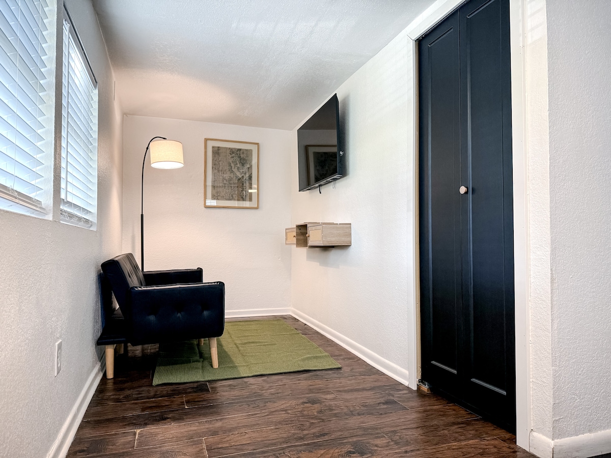 ジェミニ・リトリートへようこそ。 フロリダ州デバリーの中心部にあるこの新しく改装された快適なワンルームアパートは、豪華な寝具と家具を備えており、特別なご滞在をお楽しみいただけます。 到着すると、美しい森林地帯を見下ろす専用パティオがあります。 オープンキッチンとリビングエリアを備えた、考え抜かれたデザインの落ち着いた空間に入ります。 自然光が差し込む部屋にある超快適なベッドでお休みください。