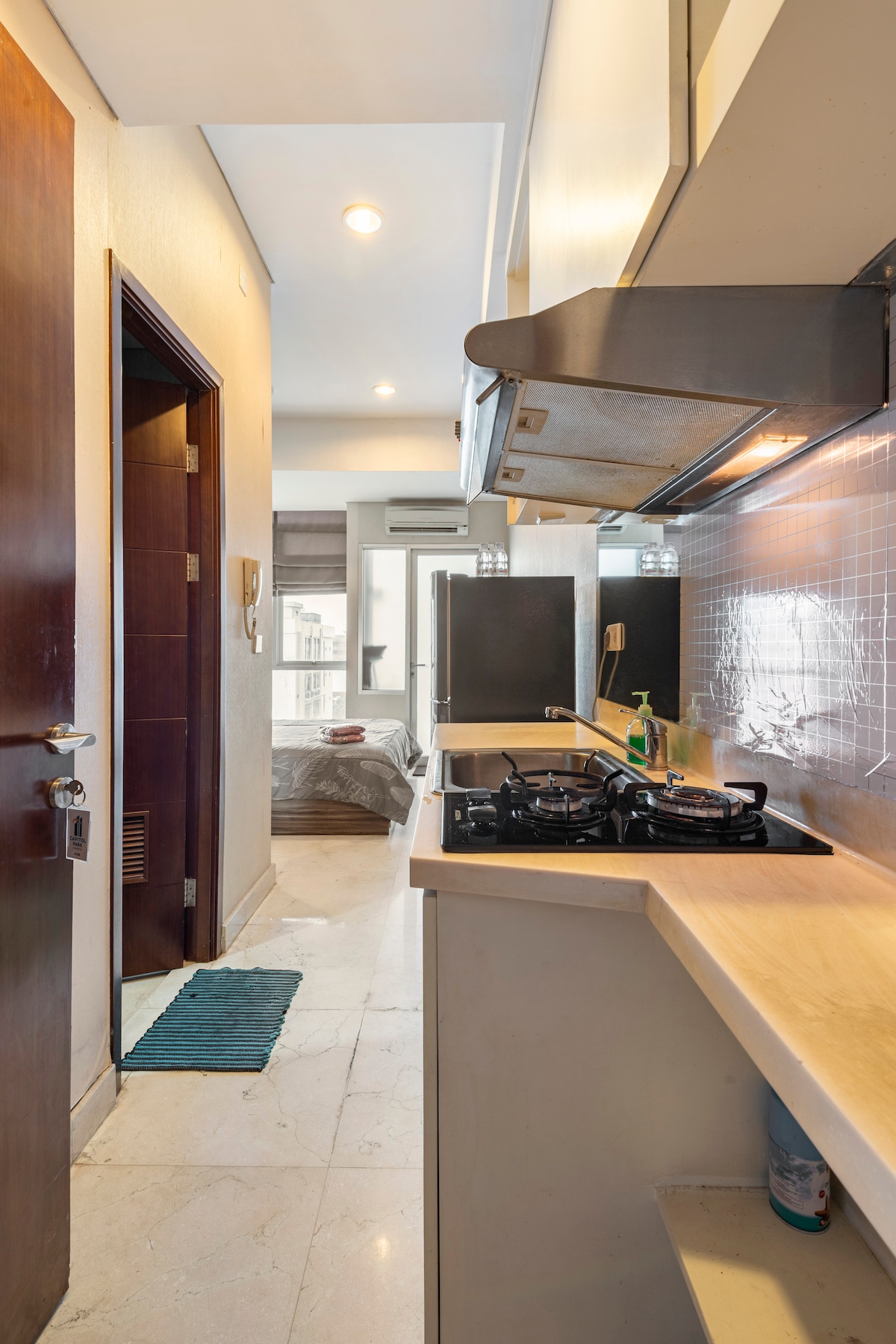 ジャカルタの中心部にあるエレガントな24平方メートルのスタジオで、スタイルと利便性を兼ね備えています。キッチン、高速Wi-Fi、空気清浄機、43インチスマートテレビ、サウンドシステム、Netflixが含まれます。非接触式アクセス、プール、ジャグジー、ジム、バスケットボールなどのアメニティを備え、さまざまなタイプの滞在に最適です。 今では、逆浸透ディスペンサーと食品廃棄物処理機を備えています。 写真には、ガスコンロが写っていますが、火災の危険性に関するアパートのガイドラインに従って、IHクッカーに交換されました。