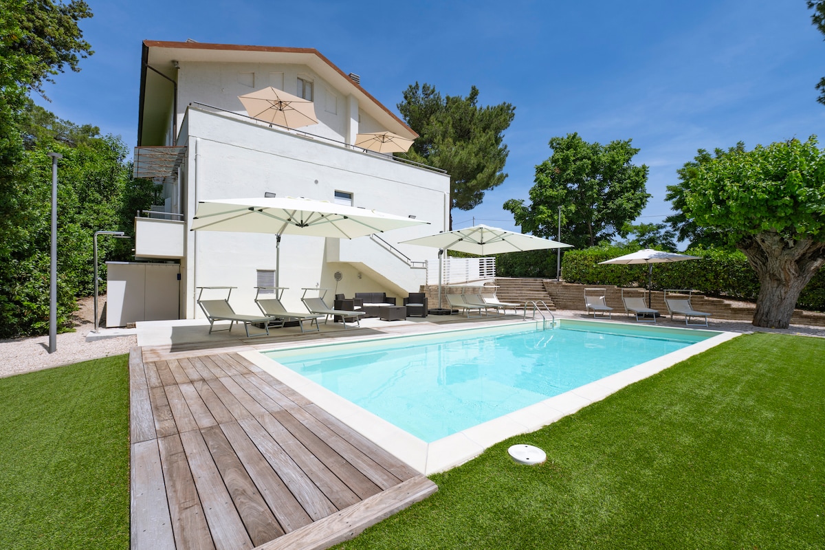 寝室4室、バスルーム6室、キッチン、リビング、ダイニング、ベランダ、専用庭園、プールを備えた歴史ある大きなプライベートヴィラ。 エアコン、ペレット暖房、Wi-Fi ヴィラには独立したエントランスがあり、典型的なマルケの自然に浸り、あらゆる種類の植物に囲まれています。 プライバシー、広さ、リラクゼーション、自然との触れ合いを求める方に、あらゆる快適さを備えた理想的な宿泊施設です。