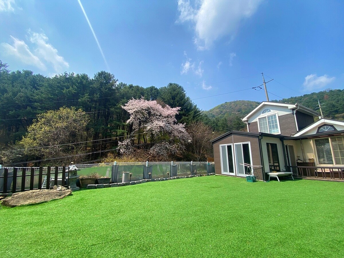 レビュー9件、5つ星中5つ星の平均評価산마루 황토 피톤치드 잣나무 숲 유럽풍의 들꽃정원 참나무 장작 황토 구들방 별멍&불멍