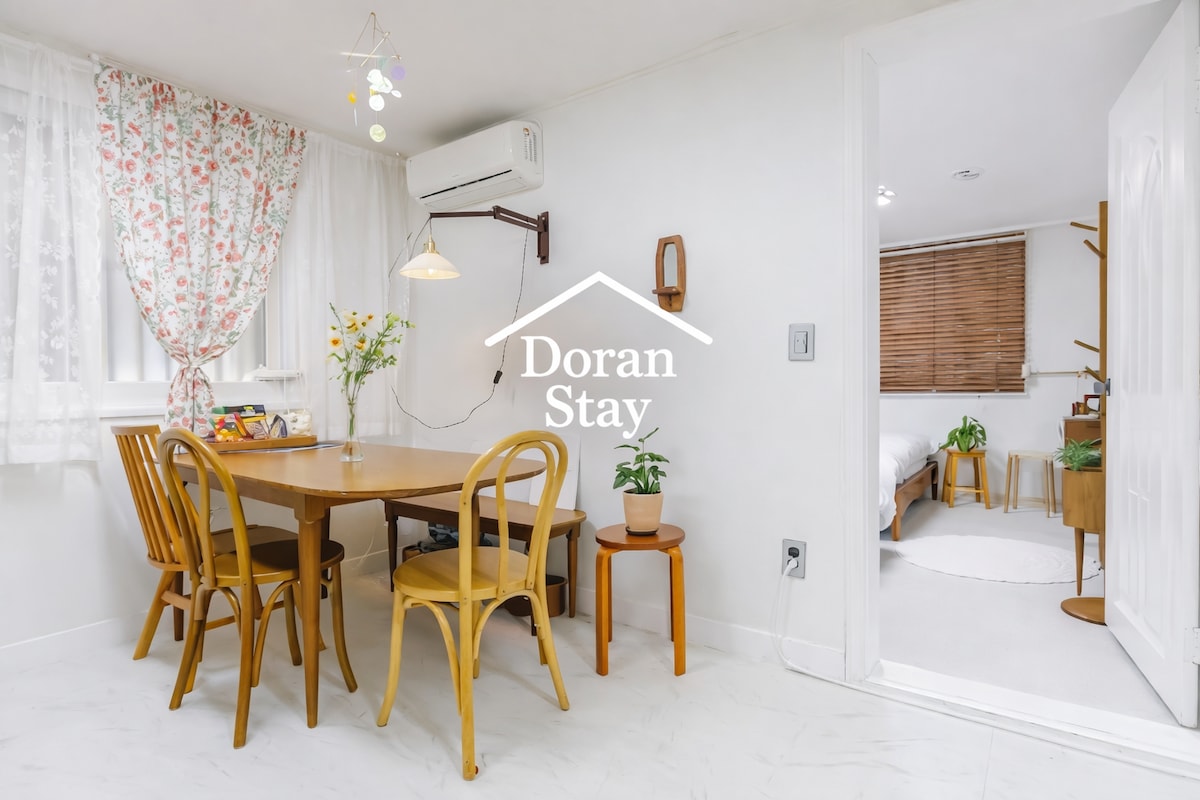 ●最高のロケーション ▶弘益大学駅( 3番出口)から20秒。 ▶空港鉄道(AREX)と地下鉄2号線が直通で行けます。 ● 専用の3ベッドルームの家 ▶アパート全体(7人宿泊可能)。 ▶ 3つの独立した寝室(クイーン3台、シングル1台)。 ▶リビングルーム ● すべての中心地 ▶徒歩1分:弘大商店街。 ▶徒歩1分:延南「延央」公園(カフェ)。 ▶徒歩1分:CVS ●最も簡単な観光 ▶明洞・景福宮:10 ~15分 ▶江南:30分(直通)!