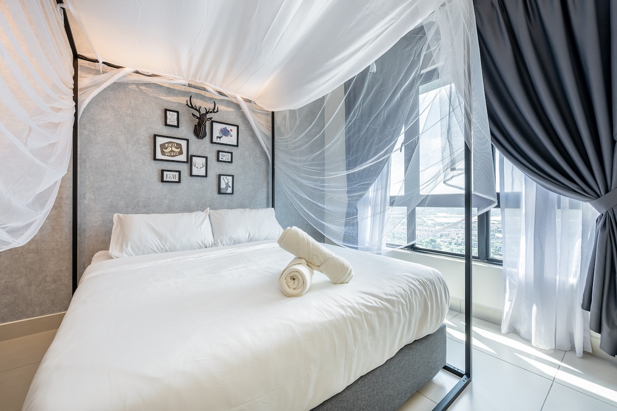 疲れをすべて癒します。こちらのご滞在は平穏でプライベートです。600mbpsとNetflixで楽しい滞在をお楽しみください。ミニマリストデザインで、より広々とした空間です。 コンドミニアムは国際空港ターミナル/KLIA 1 & 2から15分で、24時間年中無休のe-ヘーリングサービスで電車で簡単にアクセスできます。 出発前に時間を過ごしたい場合は、空港から5分、宿泊先から車で10分の場所にミッドスイートアウトレットがあります。 無料の1.5L飲料水ボトル+ 3 in 1コーヒー