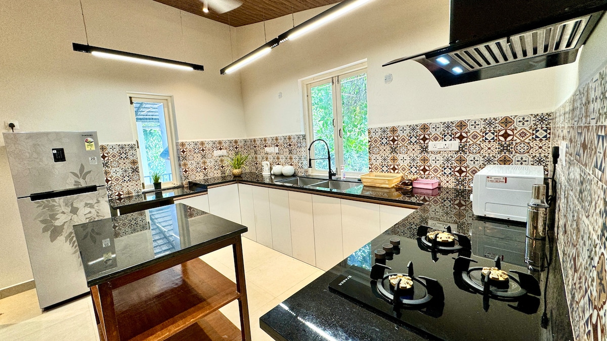 An newly renovated, minimalistic interiors home. The common areas are spacious for a group gathering. Enter into the oasis of calm and serene, the surrounds are lush green with superb accessibility to supermarkets, beaches, and restaurants. Work-cation or a vacation, we have a fully functional WIFI connection to suit your needs. We have a well equipped kitchen to experiment with your cooking abilities. Well within the range of food delivery services, the nearest beach just 10 mins walk away.