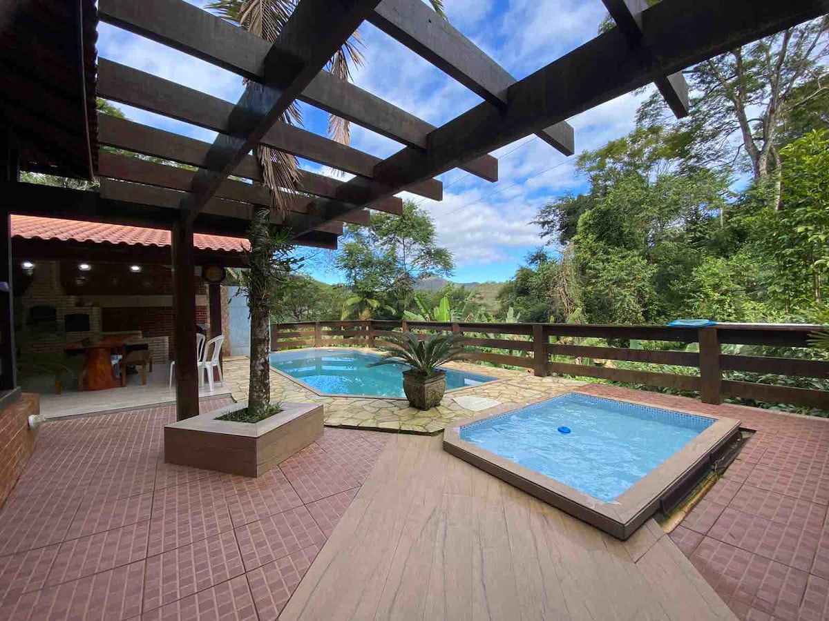家は素晴らしい景色を眺めることができ、完全なプライバシーと快適さを提供します。 プール、暖炉、薪ストーブ、バーベキュー、焼きピザオーブンがあり、アトランティックフォレストに囲まれています。 この場所は、自然を楽しみ、静かに過ごし、家族や友人との屋外会議を楽しむのが好きな人にとって理想的な場所です。