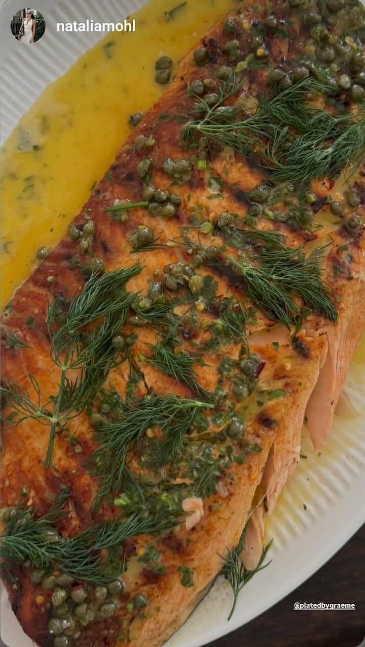 サーモングリル、レモンとケイパーのバター、ディル