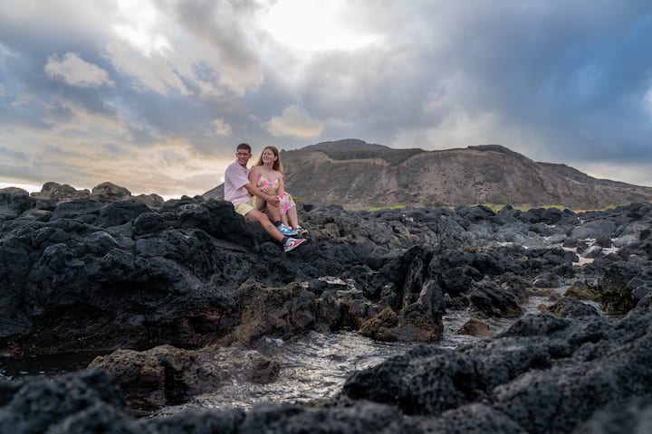 オアフ島でカップルまたはお一人様向けのゴールデンアワー写真撮影。30分間のセッション(5分間の導入とクイックプラン)。編集済みの高解像度画像を最低10枚(通常15~20枚)お届けします。色や露出の補正と軽いレタッチが施されます。無制限のダウンロードが可能なプライベートオンラインギャラリー、およびプリント/アルバムが10%オフになります。ギャラリーは1週間以内に提供されます。天候が悪化した場合は、日程を変更するか、別の場所で撮影します。撮影場所(空き状況により):マジックアイランド、ワイキキ、ダイヤモンドヘッド、サンディービーチ。