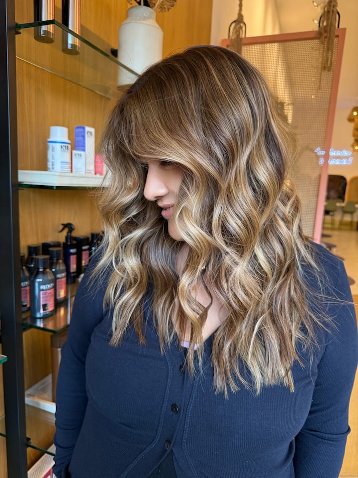 このバレイジパッケージには、カット、ヘアトリートメント、トナー、追加の製品の使用が含まれ、最後にヘアスタイルとカーリングが施されます。すべてのサービスはサロンで行われます。