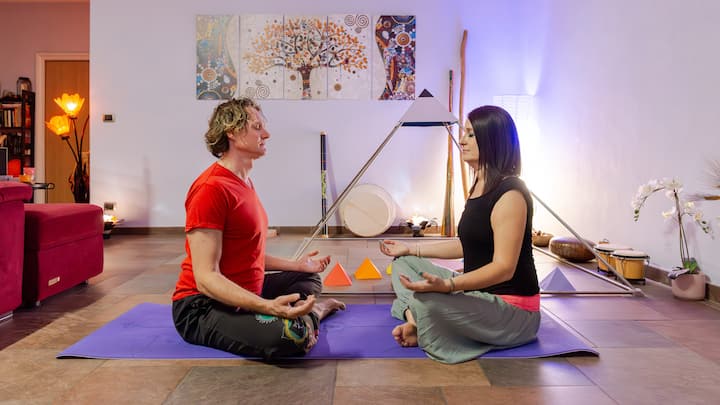 アーサナ、プラーナーヤーマ、ムドラ、マントラ、ビジュアライゼーション、ガイド付き瞑想、音の振動が織り成す豊かで多彩な体験は、あなたの個性に合わせて調整され、真の深い持続的な幸福へと導きます。
