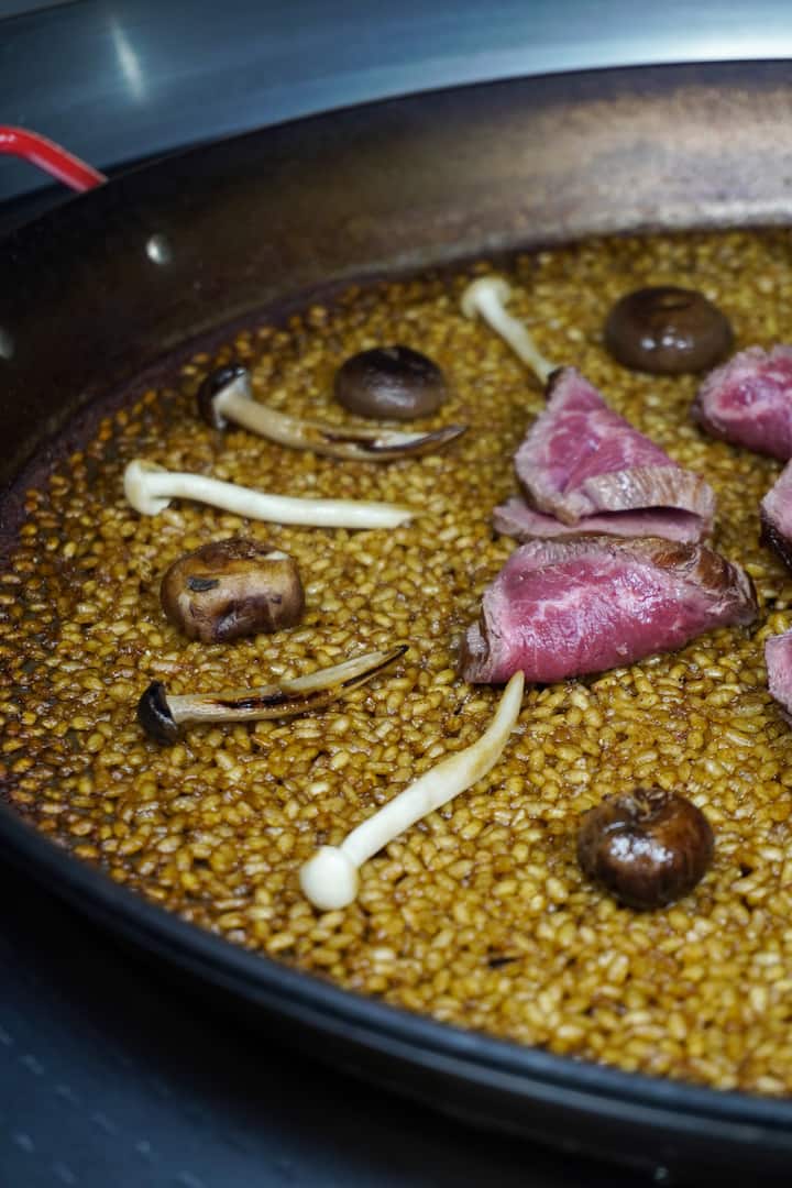 炎のタッチで地中海の味を体験。赤海老のコロッケとカタルーニャ産チーズのテイスティング。次に、サーロインステーキのタルタルステーキと、ライブで調理されたドライライスの魅力的な香りが続きます。イベリコ豚のブラセードと海老のシェフの秘密のソース添え。伝統と味が目の前で出会うショークッキング。