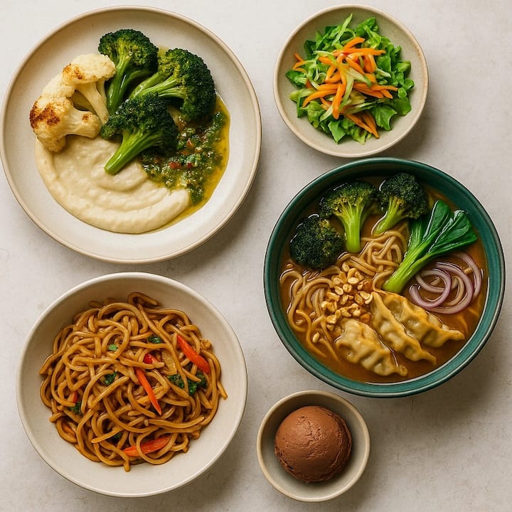 ヴィーガン、植物由来、オーガニック、家庭料理、食事のニーズに合わせて柔軟に対応。