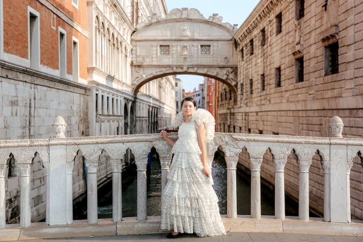 ヴェネツィアの魅力的な街並みや隠れた名所を撮影し、エレガントで自然な写真を撮ります。