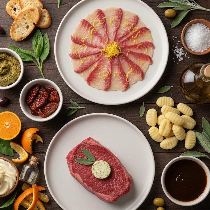 多様な料理、グルメ、ホテル、ヨットの料理。