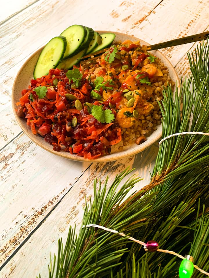 ナッツのようなソバを中心にした、おいしくてヘルシーなグルテンフリーのボウル。ベジタリアンとして満足感を味わうか、お好みの肉を加えてカスタマイズしてください。クリーミーで健康的、そして自然にボリュームのあるこのボウルは、トーストしたそばと新鮮な野菜、豊富なタンパク質、そして明るい風味を組み合わせています。