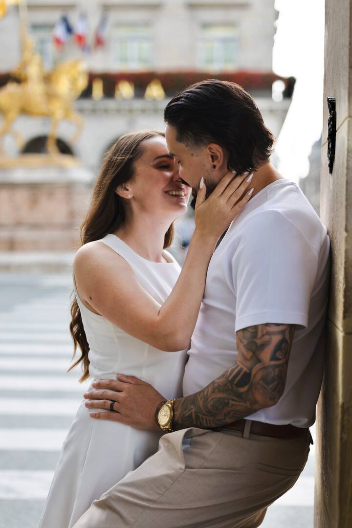 パリでロマンチックなバレンタインデーのカップル写真撮影 魅力的な街並みや名所を散策しながら、自然で親密な瞬間を写真に収めましょう。