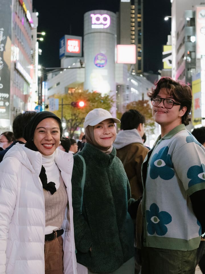 東京の中心部で約15分間、3〜5回交差点を渡り、楽しくエネルギッシュな写真を撮りましょう。ポーズを気にせず、リラックスして笑顔でその瞬間を楽しんでください。私がご案内します。
