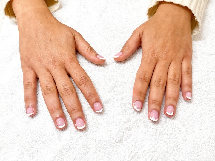 すっきりとしたホワイトチップと洗練された自然なルックスが特徴の、クラシックでエレガントなマニキュア。爪にやさしく、洗練された仕上がりが長持ちします。
