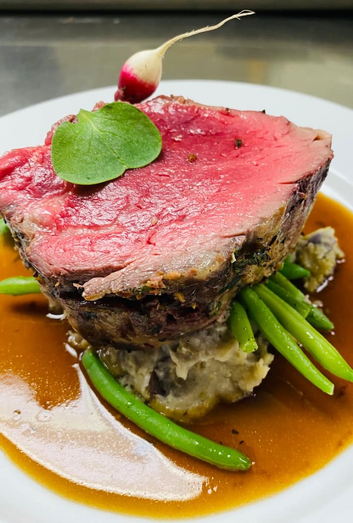 地元産の食材を使ったクラシックなサーフ・アンド・ターフ