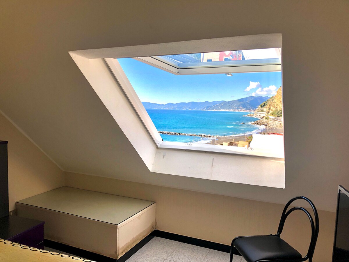 (NEW: Air conditioning just installed in March 2023!) - Spacious apartment downtown on the top floor with big terrace (60 sq. meters) overlooking the old town and surrounding mountains and a little slice of the sea, just a 100 meters walking from the shore. Particularly great for quiet family vacations on the beach, exceptional starting point for hiking on the surrounding mountains, super convenient to visit Cinque Terre and nearby towns. Very close to the train station.