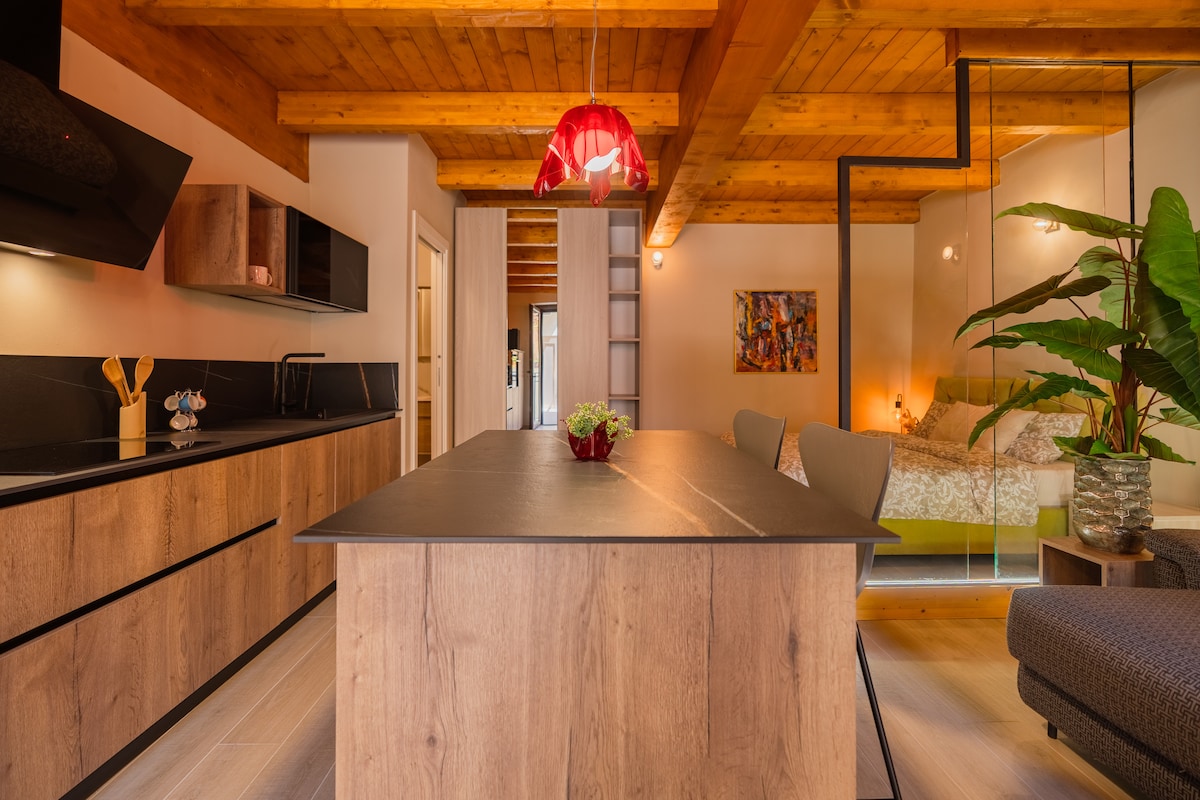 「Old Fir」は完全に改装された新しいワンルームマンションで、ここは家族の家なので、お手入れと愛で飾られています。 オウルクスの中心にあり、快適で、山と森の景色を眺めることができます。思いやりのある家具。硬木の床、暖かい色、居心地の良い雰囲気。 南に露出したバルコニーがあるので、いつも日当たりが良く、庭を眺めることができます。私たちはペレットを温めているので、環境を尊重します。