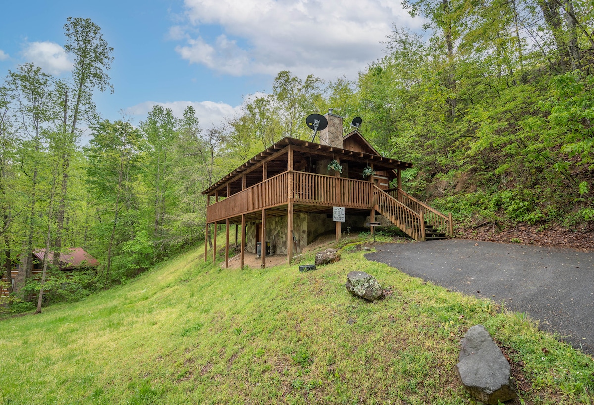 Welcome to "Dream Away" Cabin! -Beautiful cabin with a forest setting, located 10-15 minutes from Pigeon Forge and Gatlinburg, convenient to all of the local shows and attractions in the area. **READ**This cabin is located on the top of a mountain. This means that the roads are NOT flat.They are curvy, narrow, and somewhat steep. It is located on a MOUNTAIN. Roads are maneuverable, however, please DON’T reserve if you can’t handle the drive and will deduct a point on location!